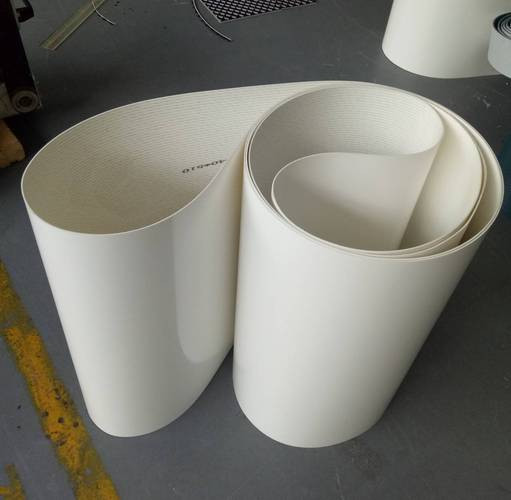 PU输送带侧重高性能与高适配性,适配高要求场景。它采用聚氨酯材料制成,无毒无味,符合FDA食品级认证,表面光滑无孔隙,易清洁、不滋生细菌,是食品、医药行业的首选。其耐磨性、抗撕裂性优异,使用寿命可达5-8年,且耐油性强,能适应油污、轻微腐蚀环境,耐温范围扩展至-30℃至80℃,过滚筒平稳,不易跳动。缺点是初始成本较高,耐强酸碱性能略逊于PVC。