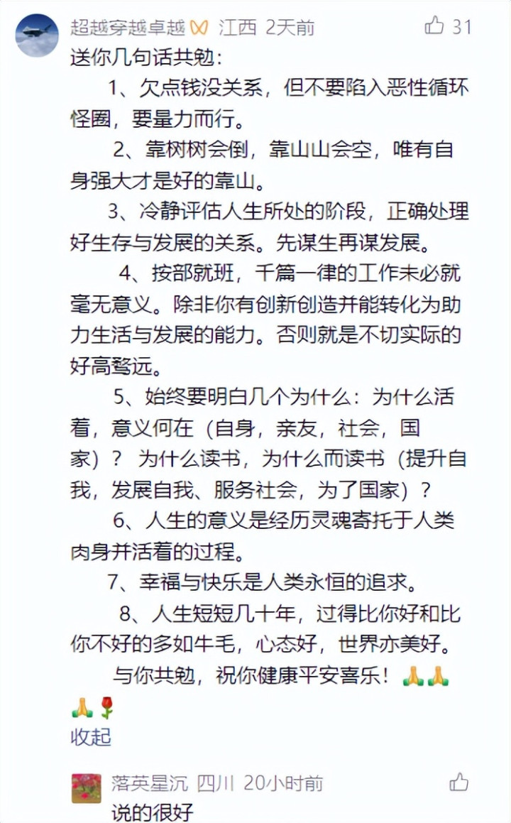 甚至还有网友给出了多项建议,这个网友说:送你几句话共勉: