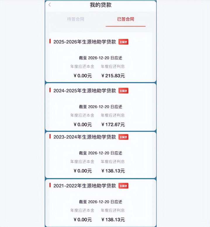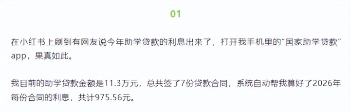 这不,有个00后的女博士就晒出了自己从本科到博士这10年申请到的的国家助学贷款总共11.3万,而她需要支付的2026年的利息,各份合同加一起计975.56元。