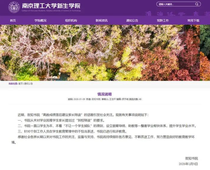 不过目前校方并没有承认自己这么做了,反而说是工作人员表达不清,已经批评。校方称:新生书院未对任何一名学生提出家长到校陪读的建议。仅与前述提到的部分学业困难生家长进行沟通联系,目的也只是家校协同。