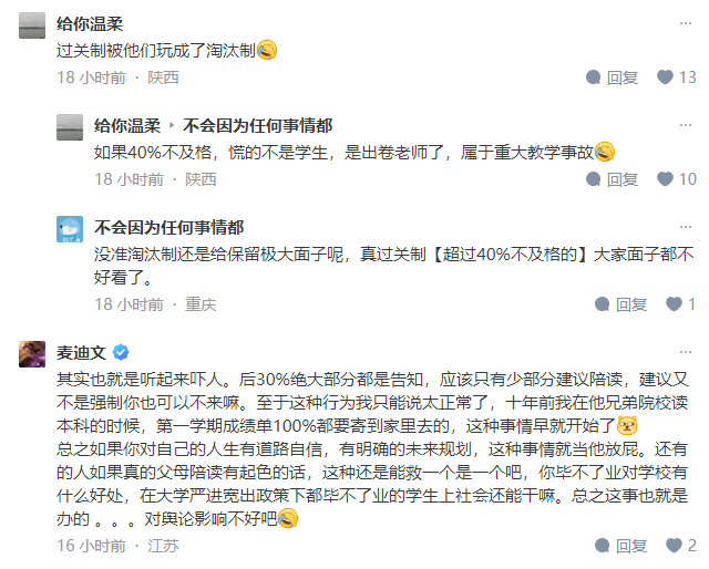 笔者则两者都不同意,反而是更偏向学生的观点,因为没必要,都是成年人了,对自己的行为负责,如果校方规定后30%的学生不予毕业,那就执行好了,没必要再恶心一下家长。老师存在的目的是教书育人,不是教书管人,能考上南理工的没有一个弱者,如果自己都不想学了,何必要去管他?