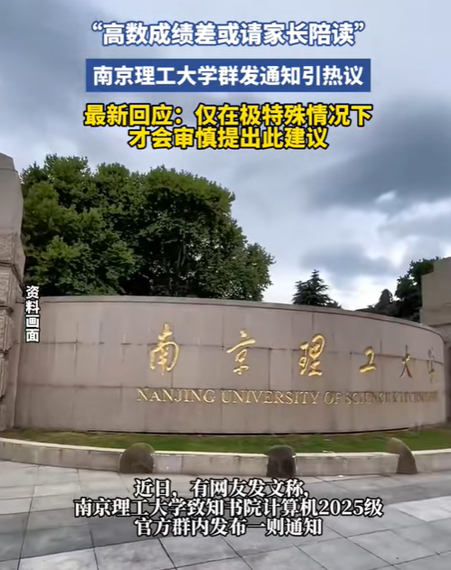 都大学生了,还要家长管?如果家长天天跟着学生,学生们当然不愿意了。可是有学校就加戏了,还是211高校——南京理工大学,这里唐甜南京理工大学致知书院计算机2025级官方群内发布一则通知直接让学生们崩了。